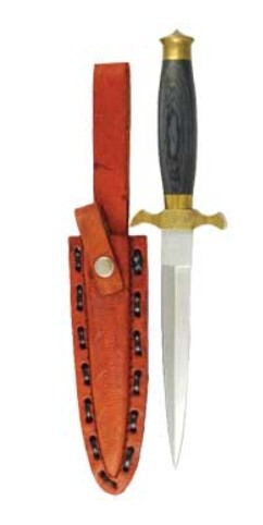 Featuring the delicate lines and curves this athame features a slender double-edged blade and a black, faux-wood grip. (Cannot ship to MA or CA) 10" - 5" blade. WARNING: This product can expose you to chemicals which are known to the State of California to cause cancer or other reproductive harm. For more information go to www.P65Warnings.ca.gov.