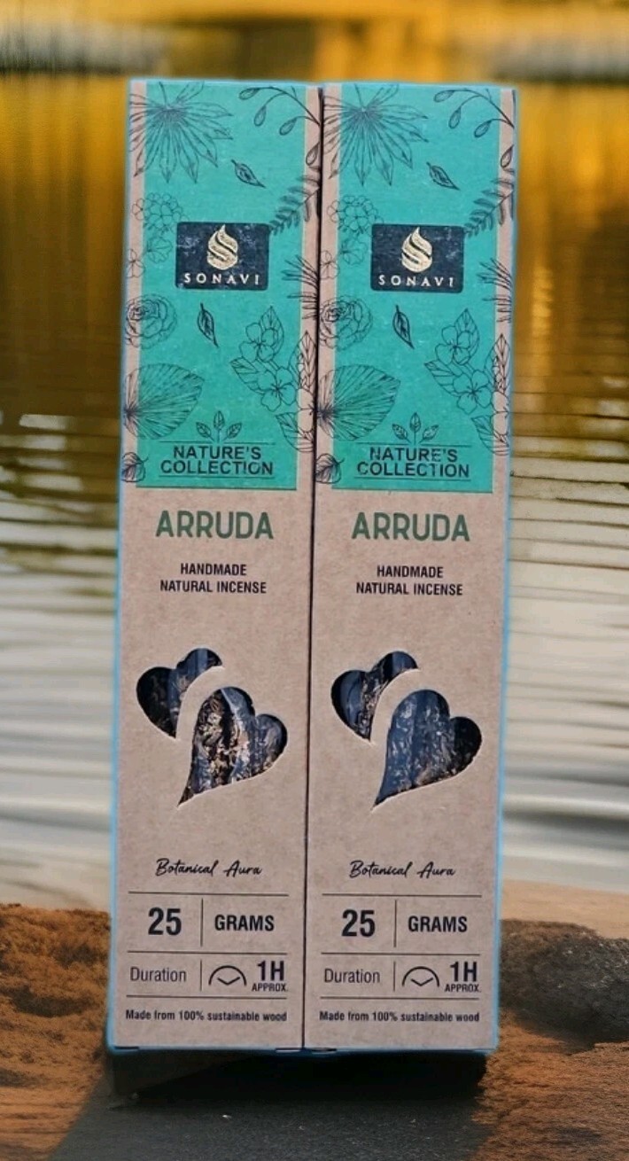 2 Boxes of Sonavi Premium Handcrafted Arruda Incense Sticks. 25gm per box.