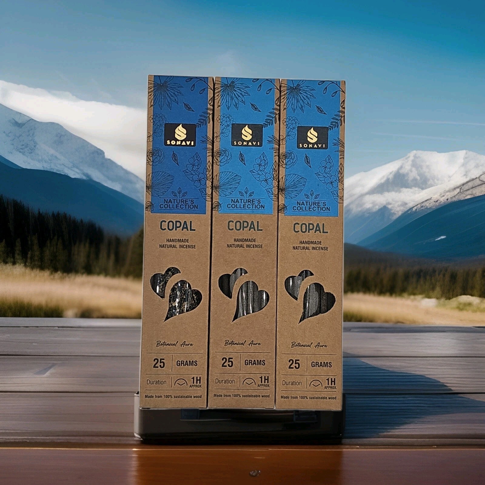 3 Boxes of Sonavi Premium Handcrafted Copal Incense Sticks. 25gm per box.