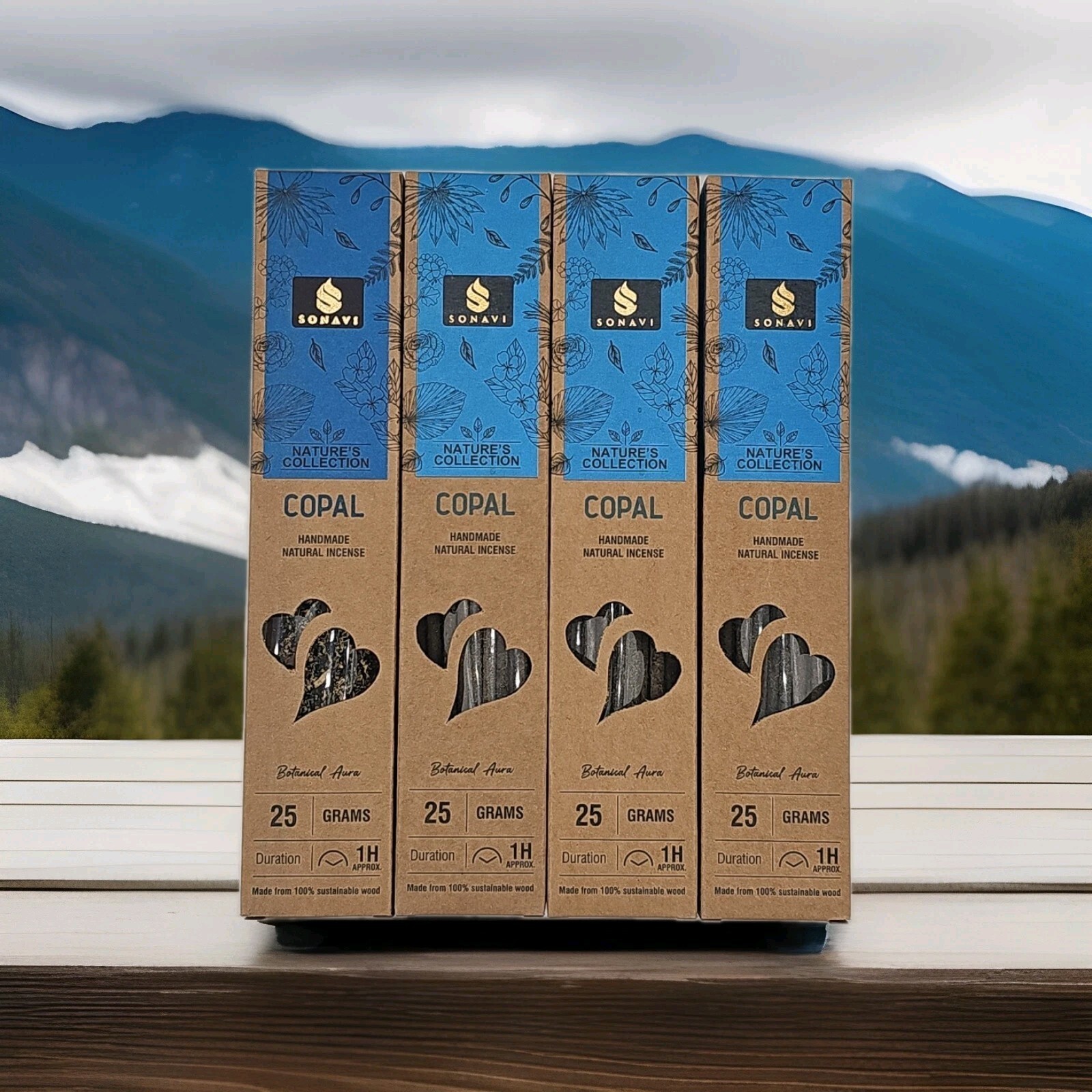 4 Boxes of Sonavi Premium Handcrafted Copal Incense Sticks. 25gm per box.