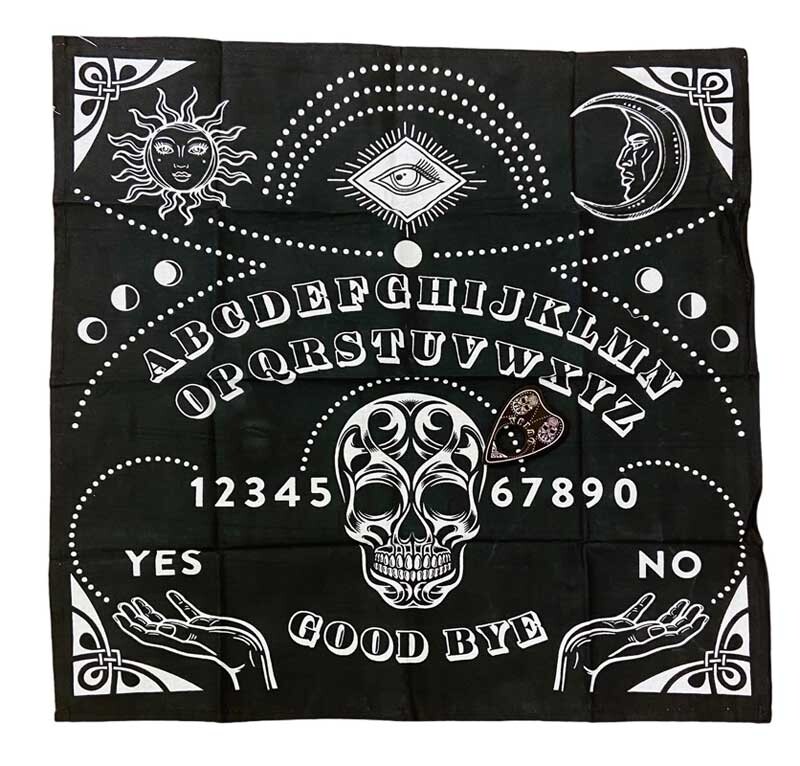 Ouija Black mat 24X24 Excluding Tax: $1.12 $14.95 Add To Cart Buy Now Call Us WhatsApp Description This Ouija spirit board mat with planchette is a large 24" x 24" cloth mat with a black background. The size is approximate, and it would also make a great wall hanging for those interested in the supernatural. Delivery Orders are packed and shipped same day if the order is placed before 3:00p.m. Central Standard Time. All orders are shipped via standard delivery. If you require expedited delivery, please contact us.